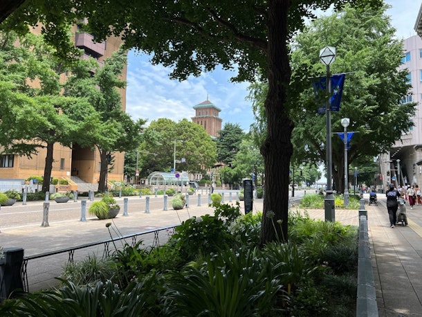 横浜のまち歩き体験「横浜の名建築×歴史ツアー~開港のまちヨコハマの美しい建築を巡る」では、少しでも暑さを和らげるために、可能な限り日陰を歩くルートになるよう現地で確認してきました。