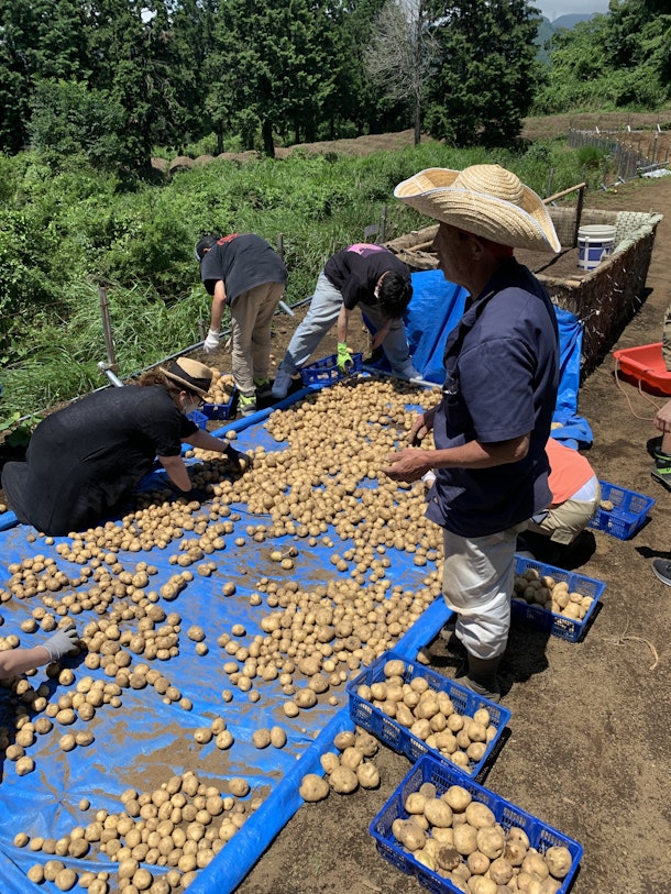 収穫したジャガイモは天日に当てて乾かします。
