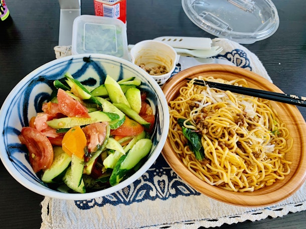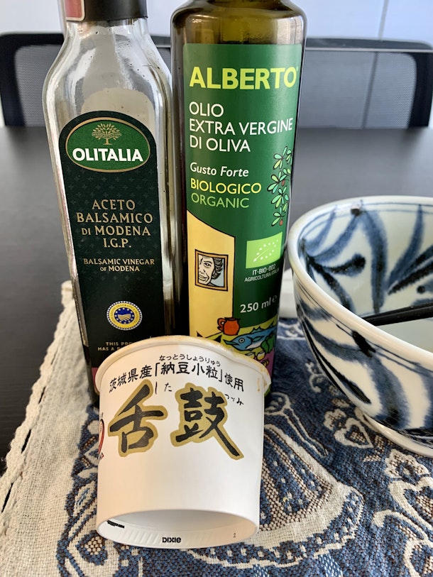 (初めて一緒に混ぜて食べた!とても相性が良く、美味しかった!納豆についてるお醤油はいらない)