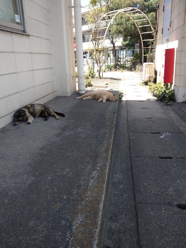 終着駅の扇町駅の出入り口付近には、野良猫⁉が地面にくつろいでいて、何とも言えないほっこりする風景が堪能できるのである。