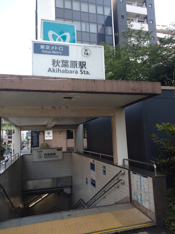 東京メトロ日比谷線 秋葉原駅の出入り口の一部が神田佐久間河岸になる。