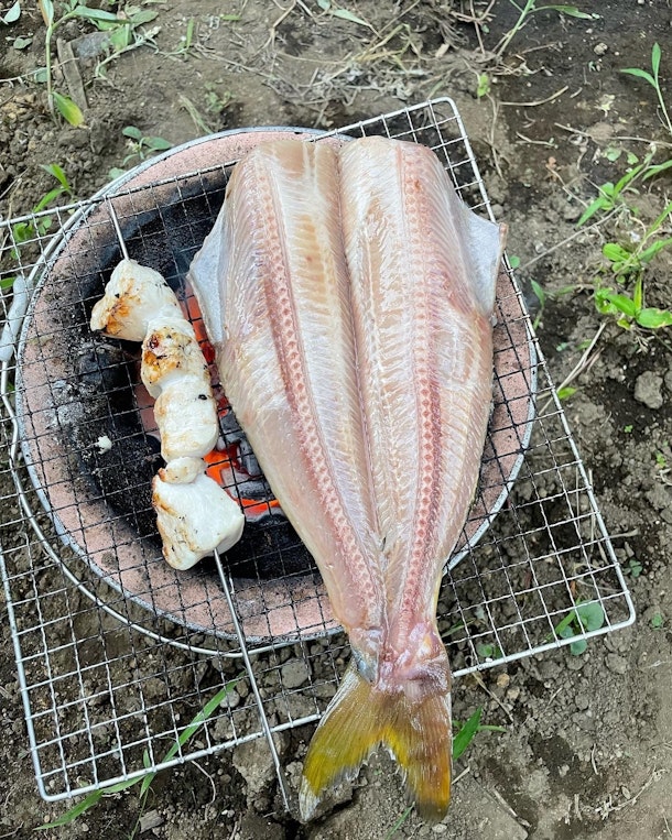 美味し食材買って、七輪で焼く。