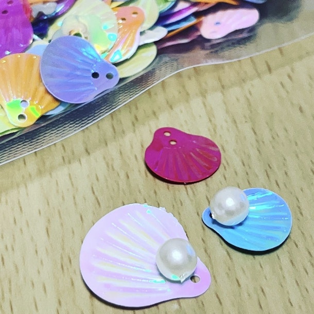 先日ポーランド🇵🇱で買ってきた、かわいい目玉パーツに加えて、昨日貝殻パーツもゲット🐚