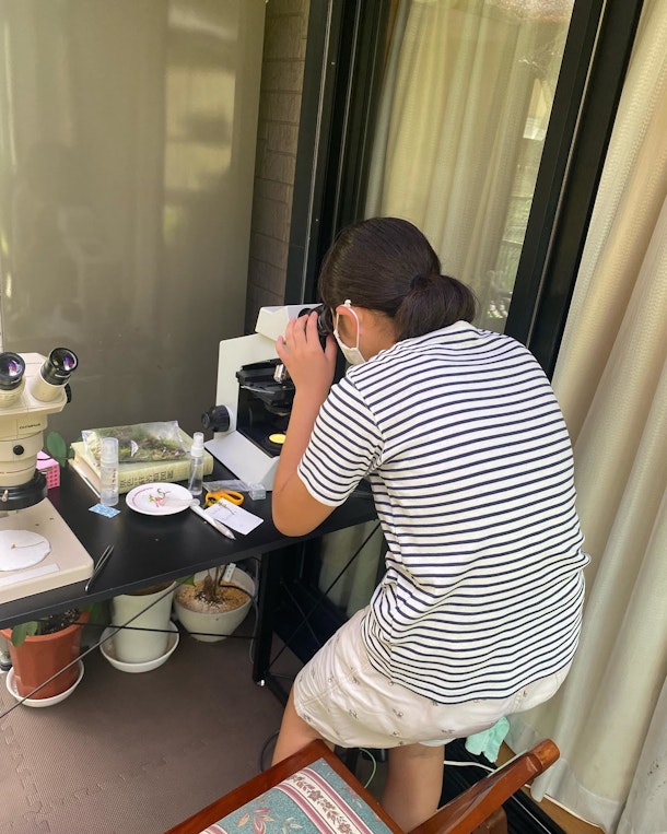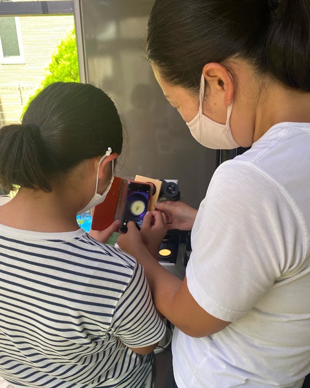 スマホで顕微鏡写真を撮影するのはとても難しいのですが、前日の夜にお母さまが工作をして顕微鏡写真が撮りやすい道具もお持ちになりました。
