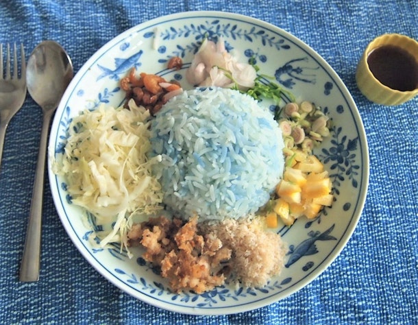 こちらは、日本でも「映え」として人気という、 カオヤム という まぜごはんです。