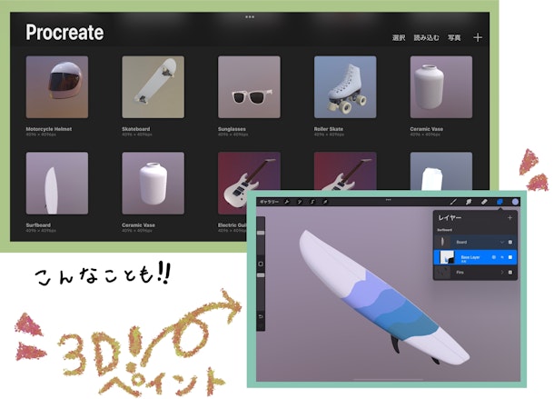 プロクリエイトには初めから入っている3Dペイント素材があり、色塗りを3Dで行えちゃう楽しさがあります(o^^o)