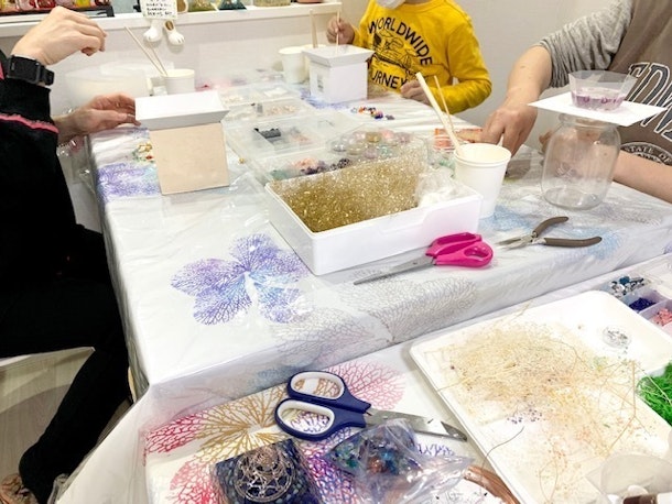 琉球ガラスのオレンジ系をたっぷりと入れられました。