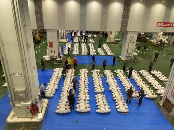 普段はこんな感じで冷凍マグロが並びます!とりあえず今日の体験の方は、皆さん早くこられましたので、ゆっくり見れたようです。一安心。