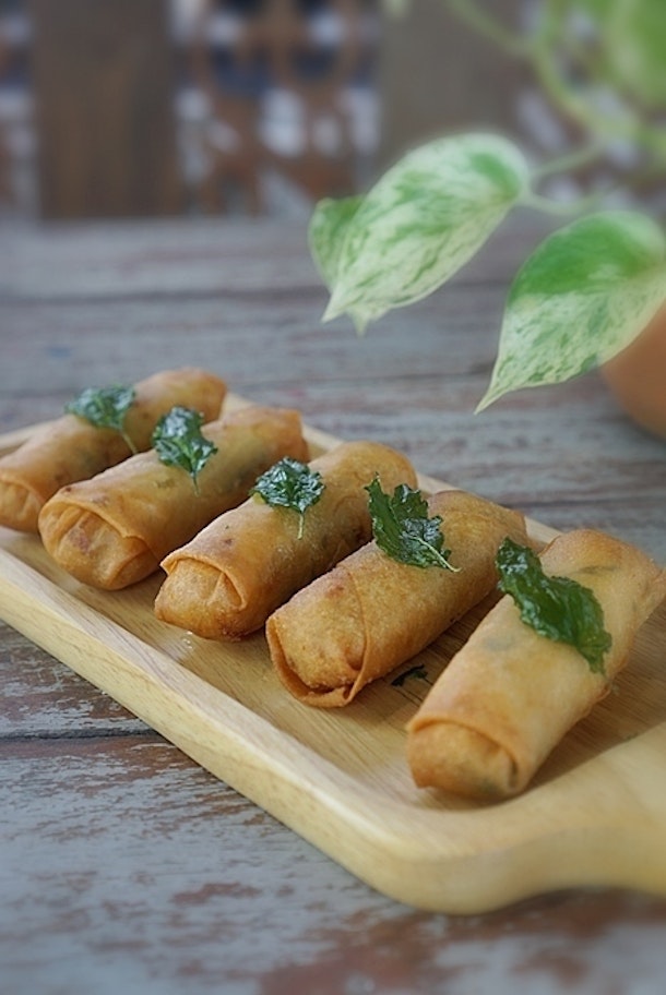 タイではアレンジ版の揚げ春巻きは色々ありますが、今回は人気なガパオ味をご紹介致します。