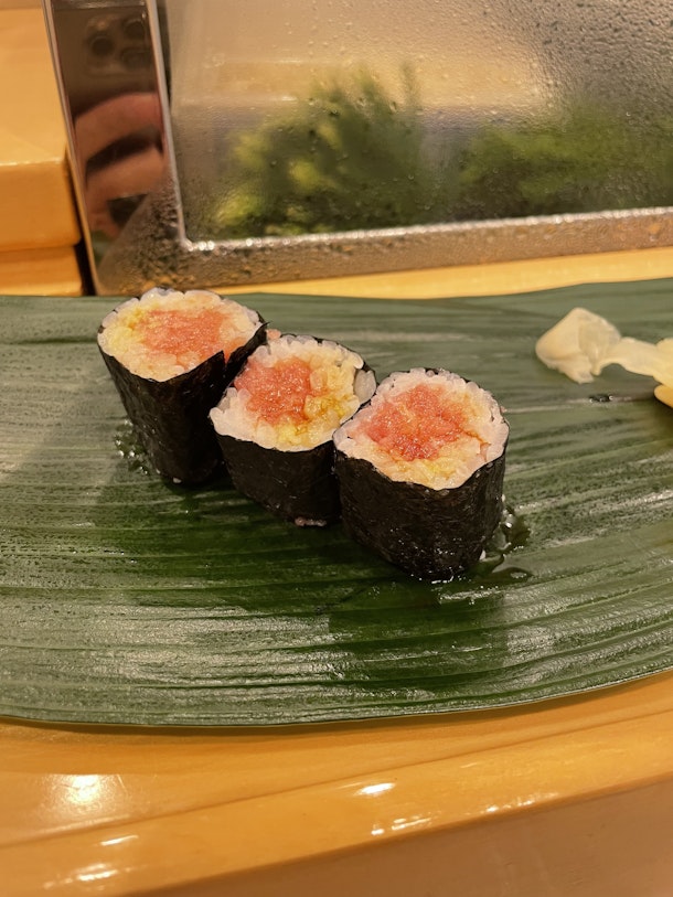 やはり本マグロの脂のうまさが、酢飯に会いますね。(酢飯次第で上にのせるマグロ産地(味)も変わるとか・・・)