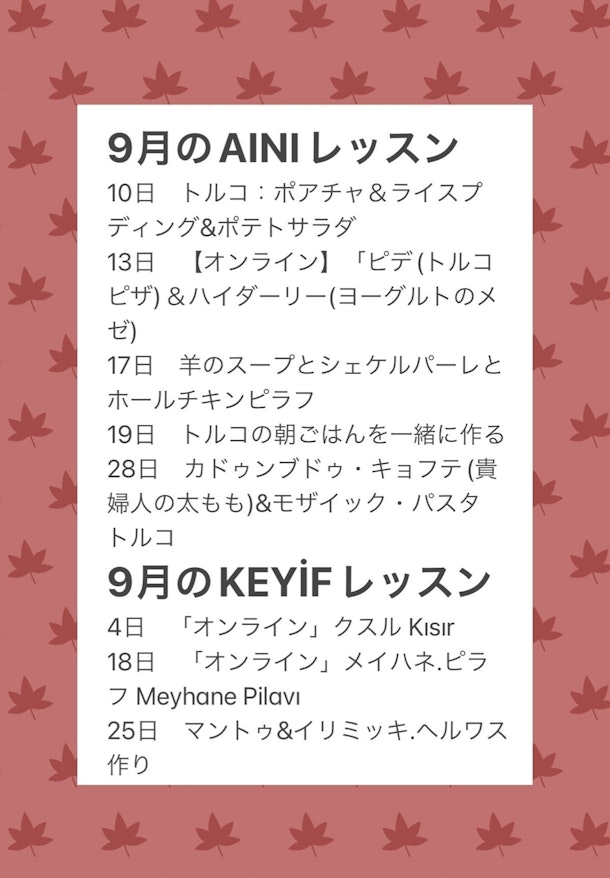 9月のスケジュール