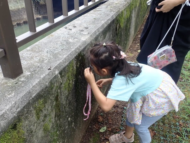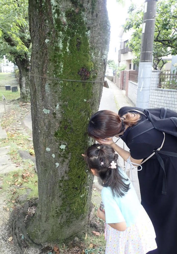 木に生えたたくさんのコケを見て”わぁ~”と声をあげ、なんとマイルーペで観察!
