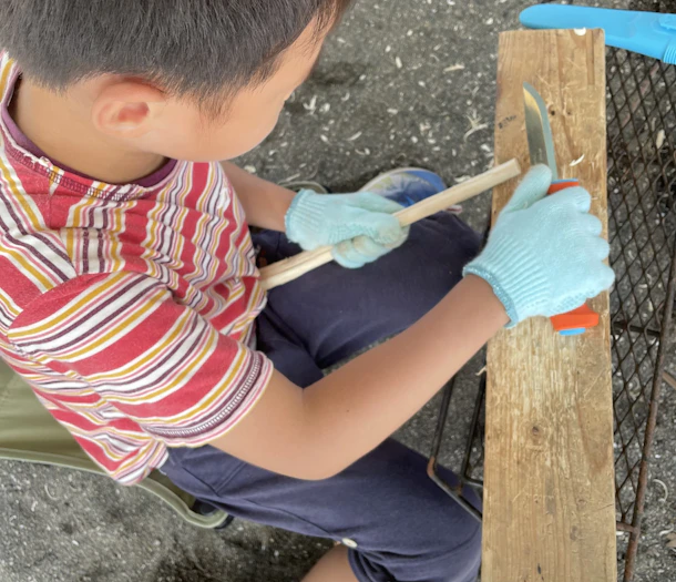 また薪割りとナイフで木を削るのがかなり楽しかったようで、終わったあとも名残り惜しそうに木を削っていました。