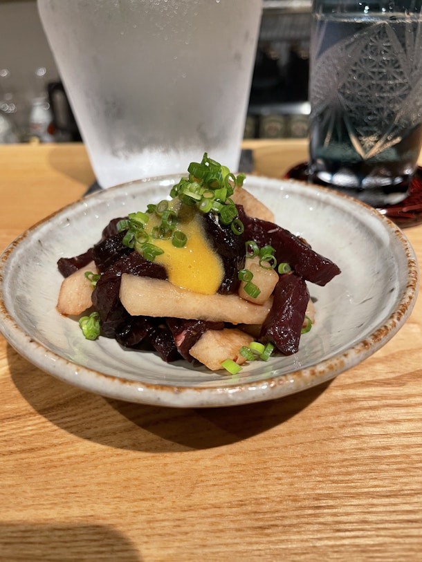 今回は梨と会えて、クジラの食感となしの食感が楽しい一品。