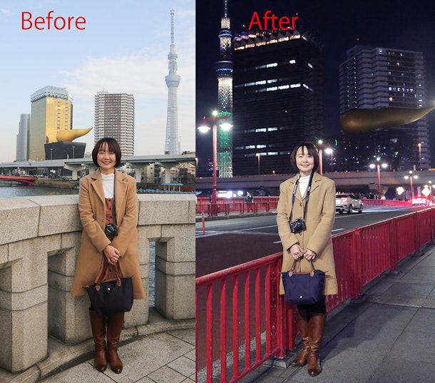 1枚目は、美顔エクササイズの途中ですが、夕陽を浴びて素敵な雰囲気でしたので、パチリと撮っておきました!真顔が笑顔に変化したかになれたかは、BeforeAfter画像で一目瞭然ですよね(*^^*)