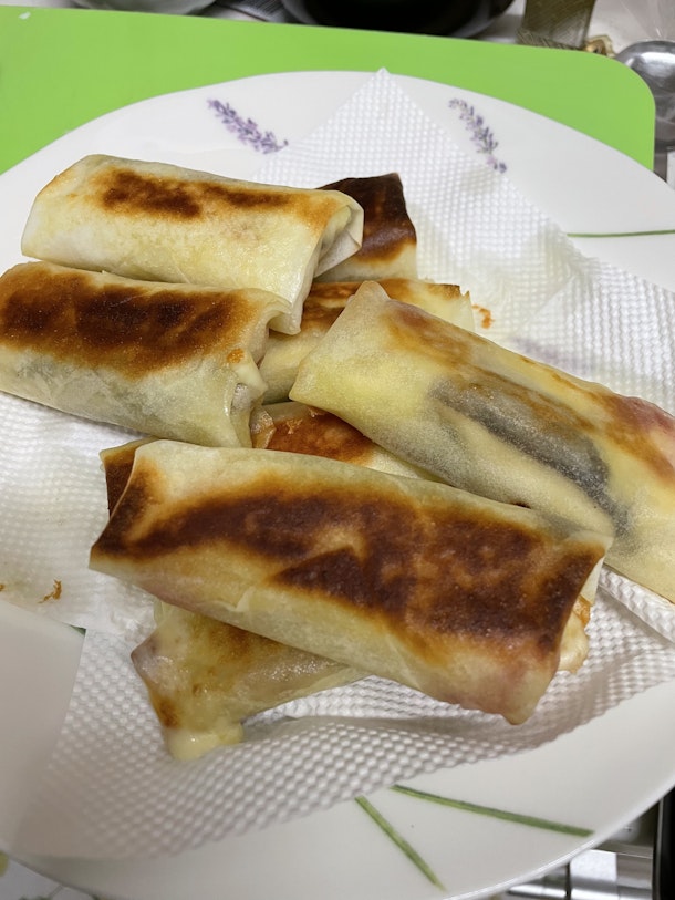 当日写真撮るのは忘れたので、写真は、後日自宅で復習を兼ねて、椎茸とトマトとカニカマの揚げない春巻き。