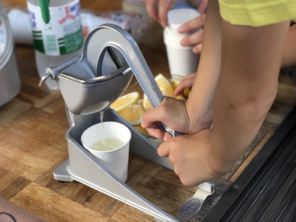 お庭で摘みたての野菜を切ったり、サラダをまぜたり、