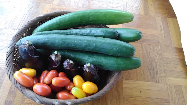 今年は不作のなす、トマトも頑張りました。薪の煙に涙しながら美味しく作って下さったゲストシェフ✨ありがとうございました。