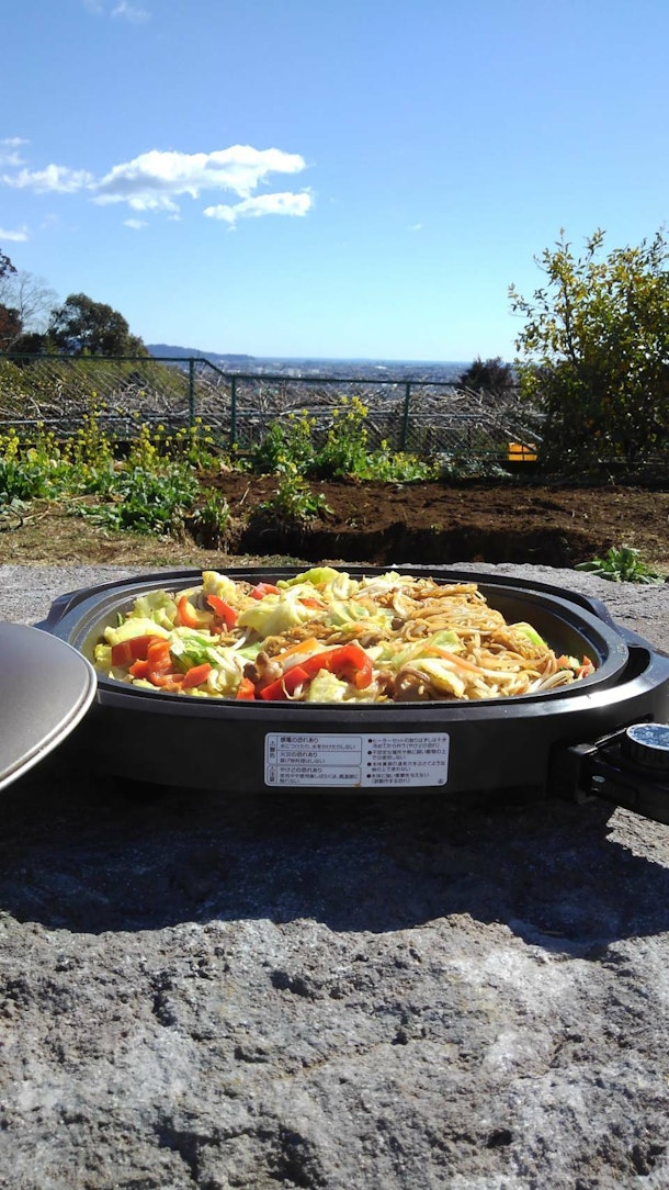 写真はある日のランチ💦コンロに自家製の薪で本格的BBQしますよ。