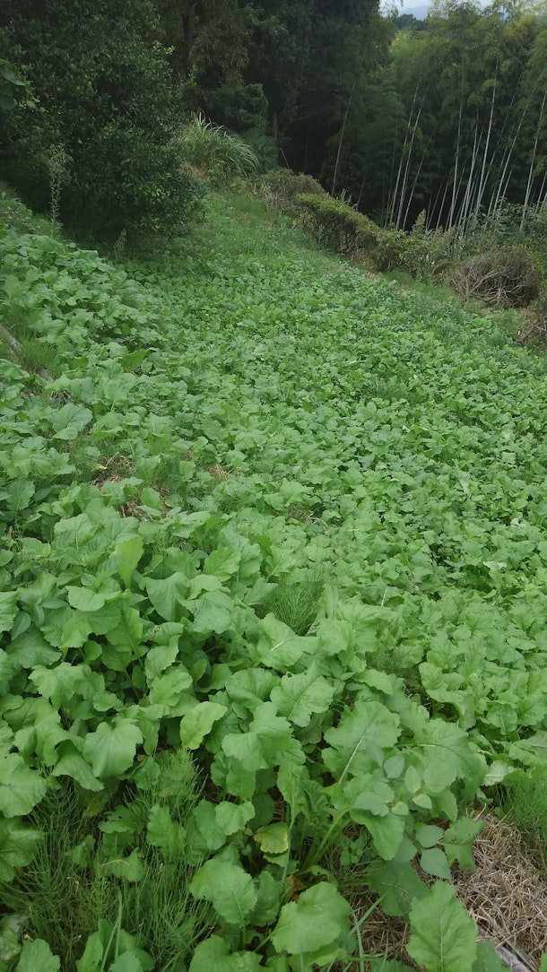 こぼれた種から、気がつけば一面の青菜😳香りと味が濃いんです❗ナムルかな?お肉をくるんで美味しいかな❓いっぱい収穫してね。