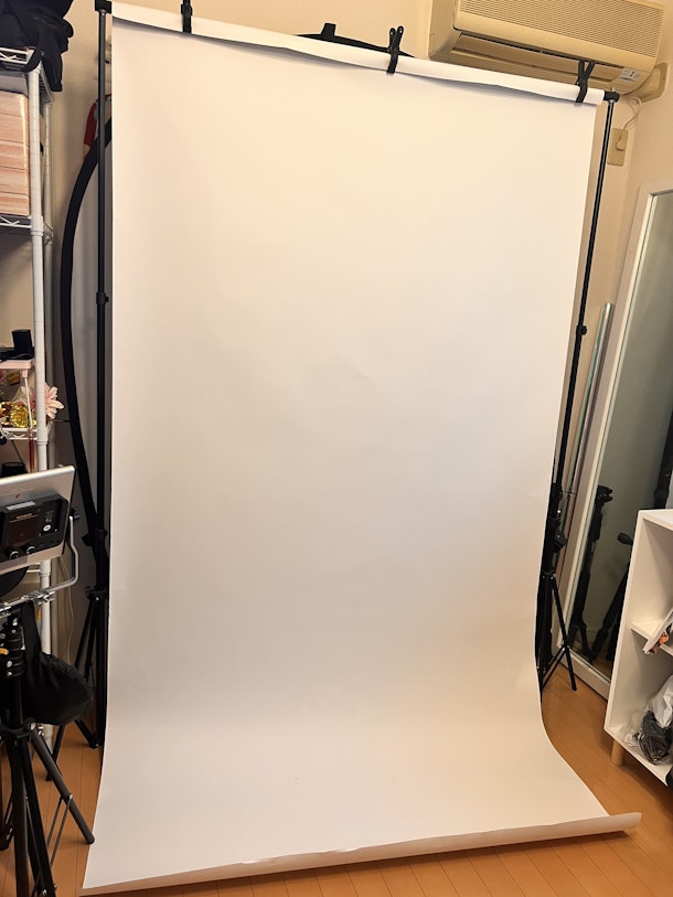 先日女優さんから予約を受け、宣材写真も必要とのことだったので、思い切って新しく背景紙を導入しました!