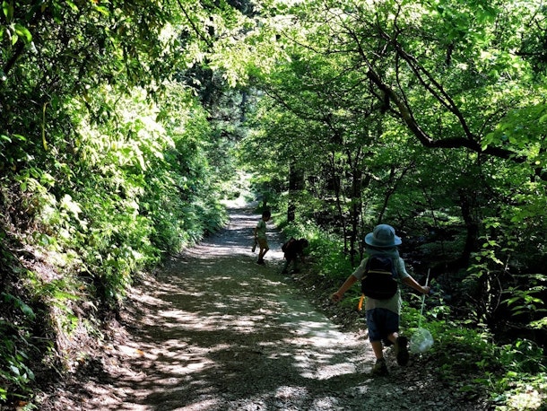 自然散策をして、沢遊びをして、湧き水を汲みにいって