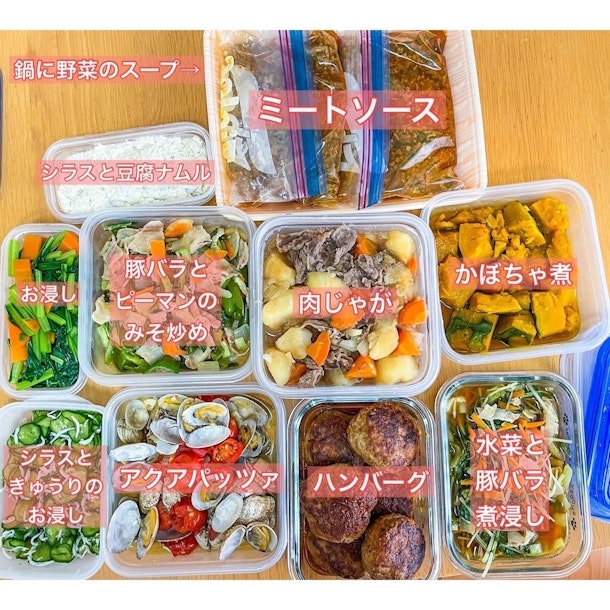 作業に入ります。 リクエストはお子さん優先のメニューが多いので、子どもうけするメニューや定番系を先に作り、 あとでアレンジしやすいもの、あまり売ってないもの(さっぱり系の味だったり、テイクアウトやスーパーの惣菜ではなさそうなもの)も喜ばれることが多いので、1-2品はそういう傾向のものも入れたりします☺︎ つくる料理のイメージは、普段自分が本で見たり、どこかで食べたりして、作ってみたいものが常にあるので、様子を見ながら、みんなが知っている料理と構造は同じでも仕上げを変えたりしてあたらしさを出してみたりなど、いろいろ試していくこともあります