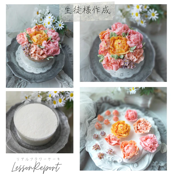 ケーキに乗り切らない位、沢山のお花を絞って頂きました。デコレーションできなかったお花はお持ち帰り頂いています。