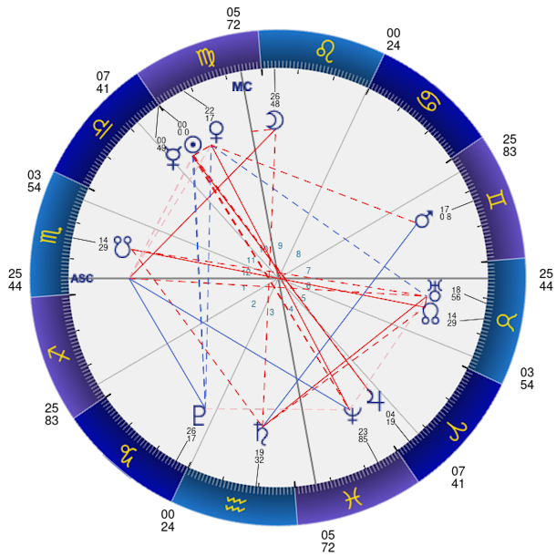 (スタナビやアストロディーンストのホロスコープではこの数字になっていますのでこの数値を採用しています)