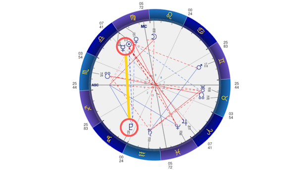 今回の秋分図の鍵を握っているASCのルーラーである冥王星と国家、首相を表す太陽とトラインで調和が取れた角度を形成しています。