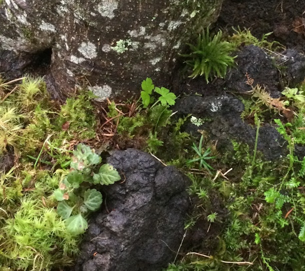 ↓来春のシソバタツナミの花はロックガーデンで見たいと思い、溶岩の脇に配置してみました。この地域だからこその溶岩と植物のアレンジを考えています。