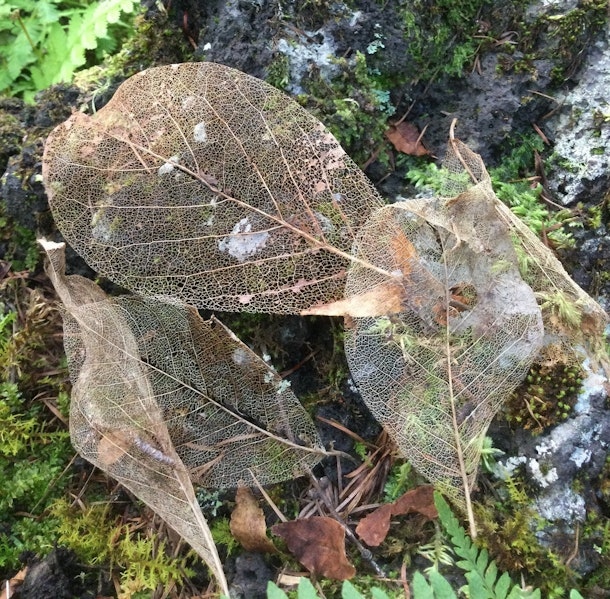 この季節は葉脈標本、たくさん落ちています。葉脈がしっかりした植物の葉が良い標本になります。コブシなどいいですね。カサコソ落ち葉の中を探していたら、こんないいのがありました。