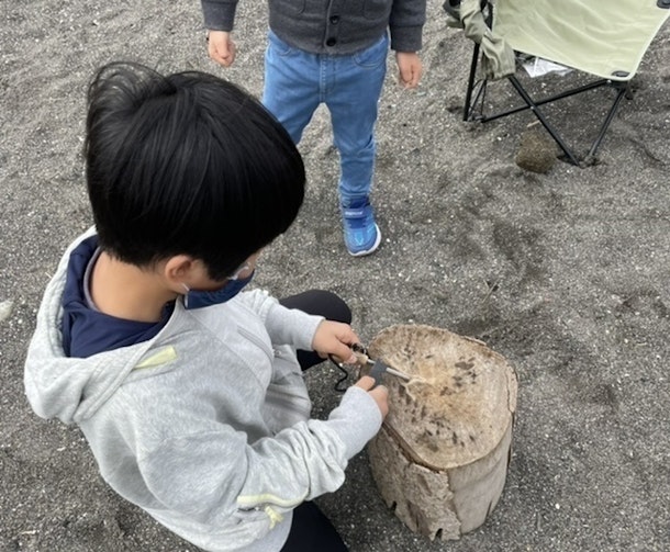 これは、この体験の中で色々な火おこしを体験した中の一つ。