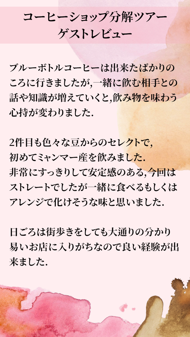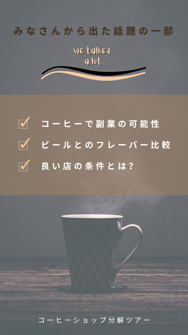 10/16(日) コーヒーショップ分解ツアースケジュール♩