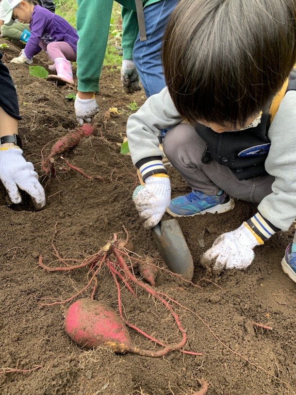 日曜日、雨に降られることもなくサツマイモの収穫体験を楽しんでもらいました^^