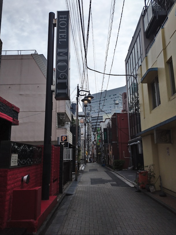 隣町の円山町との境界線近くにはラブホテルがひしめき合う。