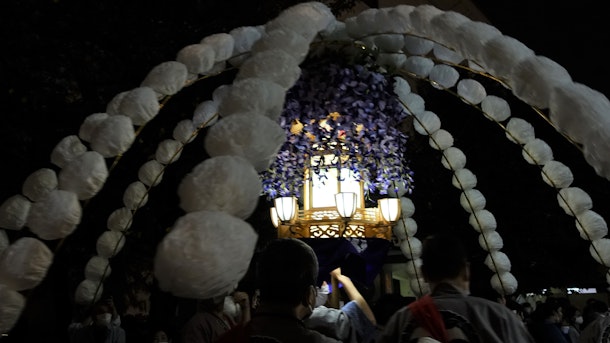 この法要で一番賑やかで美しく楽しいのは、12日夜に行われる、万灯練供養。