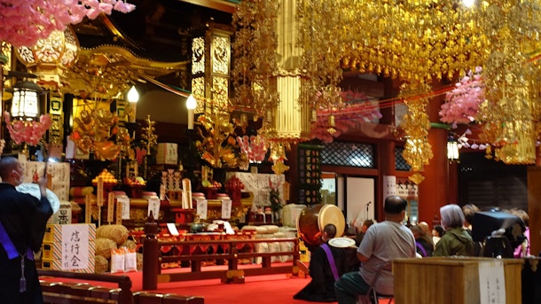 741年前と同じように読経の声が翌朝まで続き、お坊さんによる説法も続きます。