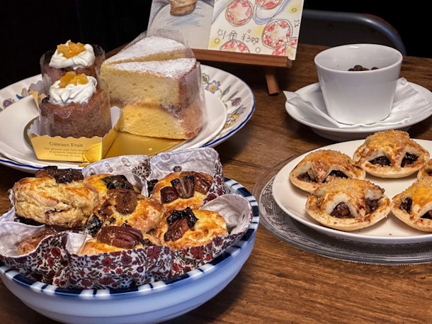 カフェ散歩で訪問する頃は、お菓子が焼きあがる時間帯。ビクトリアサンド、レモンドゥリズルをはじめ手作りの英国のお菓子が並びます。