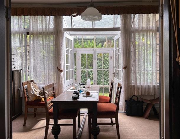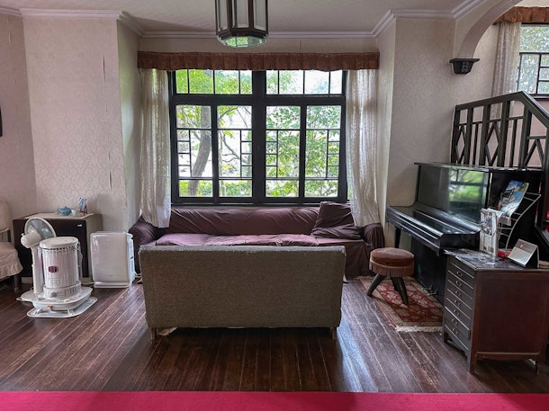 おなかが充された後は館内の散策。まずは緑の庭を眺め鳥や虫の声を聞く、テラスルーム。