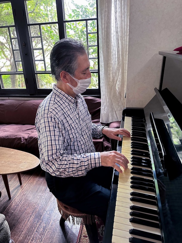 広いエントランスに置かれた古風なピアノ....(^^)。