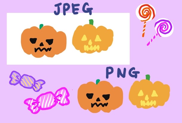 png形式では、画像を圧縮しません。データが重くなりますが、その分画質が落ちません。png形式の良いところは、背景を透過できるところです。透過とは、背景が透けた状態にすることです。