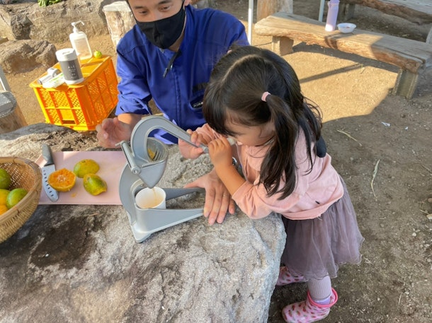 子どもが元気いっぱいにみかんの搾り滓を空に放り投げ、大人が日常の疲れを落として、ご自分の[心をねぎらう]場所であり続けたいと思っています。