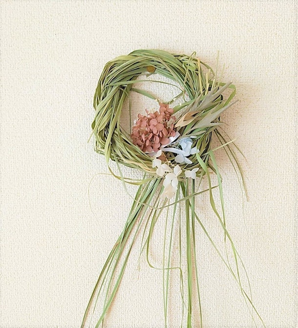 私は、庭のレモングラスをレッスンで使う時には、 ぐるぐる巻いて リースにします。