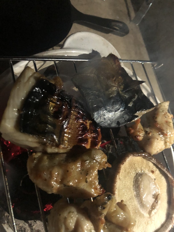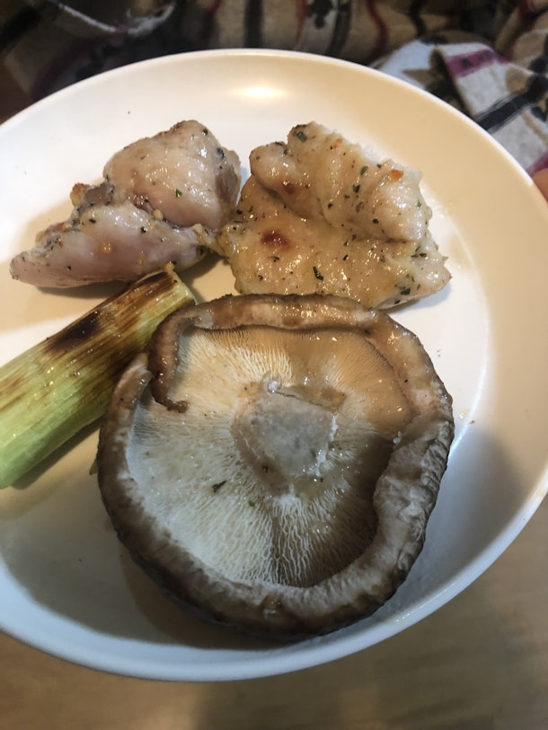 沼津産の肉厚しいたけ、スーパーの鶏肉バジル風味。