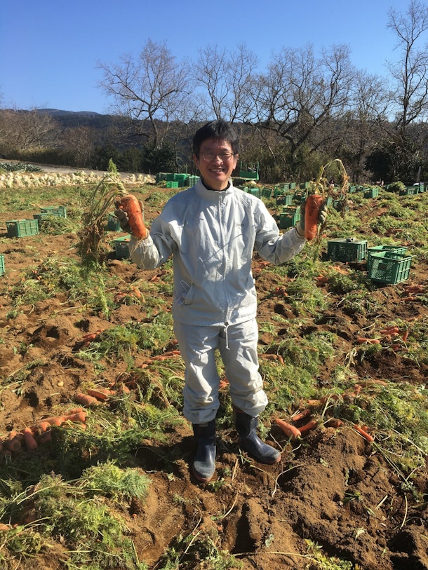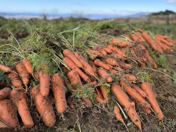 箱根西麓の高原で収穫される減農のにんじん畑の美味しいにんじん。