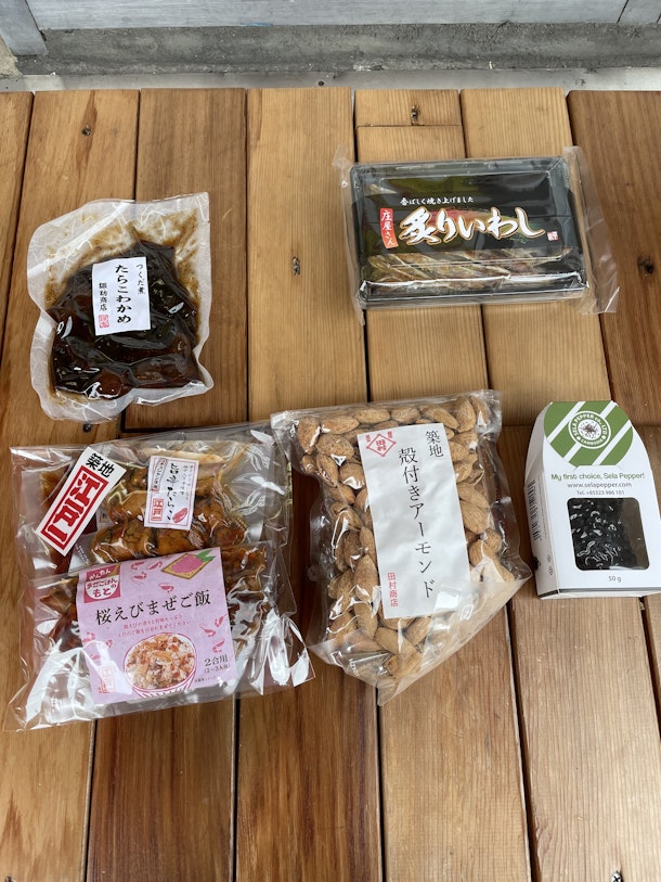 佃煮屋さんで、たらこわかめ、混ぜご飯の素、つまみに最適なかわきもの。
