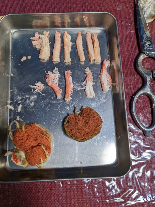 皆様、根気強くカニをほぐして、ご自分で作った香箱蟹を堪能していただきました🦀