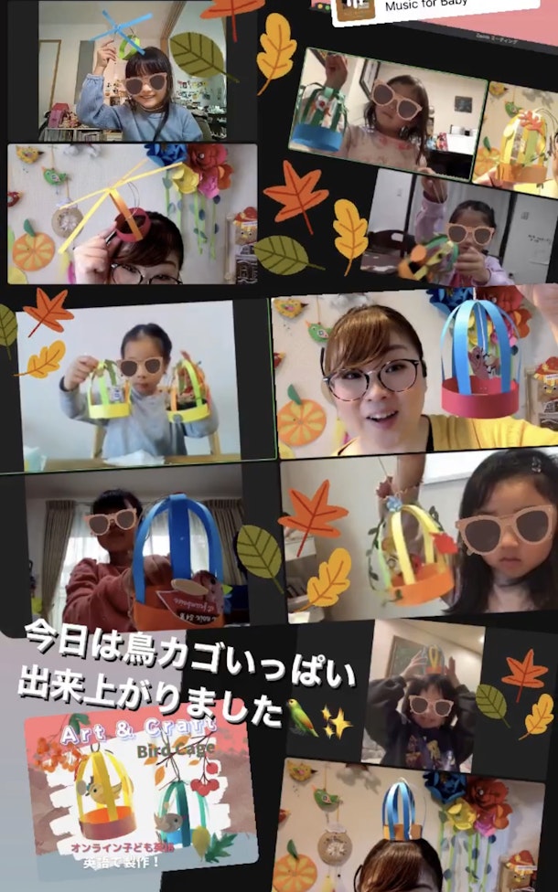 英語得意なお友達も、英語初めてのお友達もオンラインで一緒に製作あそびを楽しみます😊