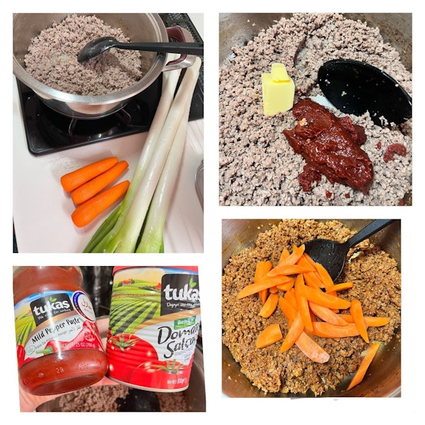 🥣トマトペースト(あればパプリカペースト)とバター入れて1分ほど炒める